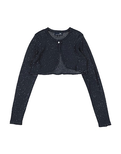 knitted, lightweight knit, solid color with appliqués, sequins, brand logo, crewneck, long sleeves, 1 button, machine wash or dry clean, do not bleach, do not tumble dry