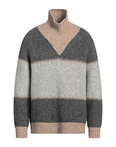 knitted, medium-weight knit, no appliqués, mélange, turtleneck, long sleeves, hand wash or dry clean, do not bleach, do not tumble dry, this brand runs large
