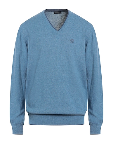 knitted, lightweight knit, mélange, embroidered logo, knitted trims, v-neck, long sleeves, hand wash or dry clean, do not bleach, do not tumble dry