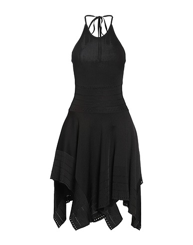 knitted, medium-weight knit, crystals, solid color, crewneck, sleeveless, unlined, self-tie closure, no pockets, asymmetrical hemline, stretch, asymmetric dress
