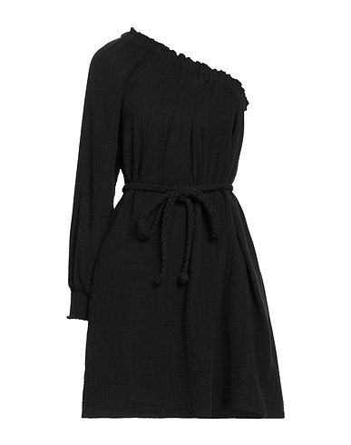 one-shoulder dress, woven, no appliqués, solid color, one-shoulder, unlined, multipockets, side slit, machine wash, tumble dry