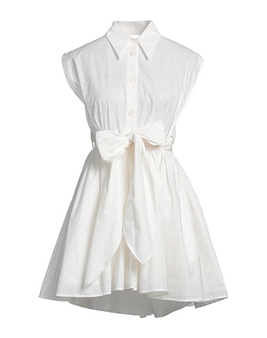 plain weave, openwork, folds, solid color, classic collar, short sleeves, partially lined interior, 3 buttons, self-tie closure, no pockets, stretch, shirt dress