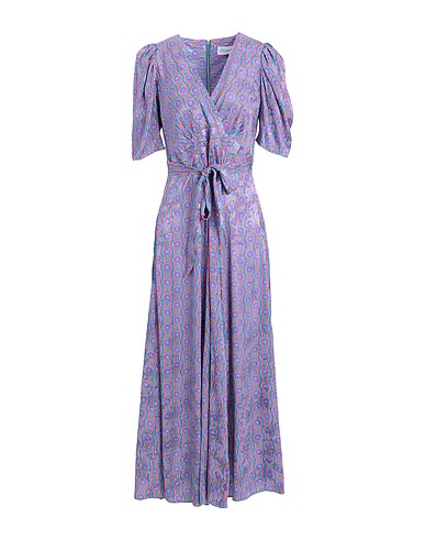 wrap dress, satin, multicolor, belt, v-neck, short sleeves, puffed sleeves, unlined, zipper fastening, pockets, front slit, machine wash, do not tumble dry