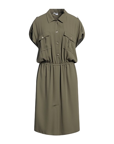shirt dress, crepe, solid color, brand logo, classic collar, short sleeves, unlined, button fastenings, multipockets, machine wash or dry clean, do not bleach, do not tumble dry