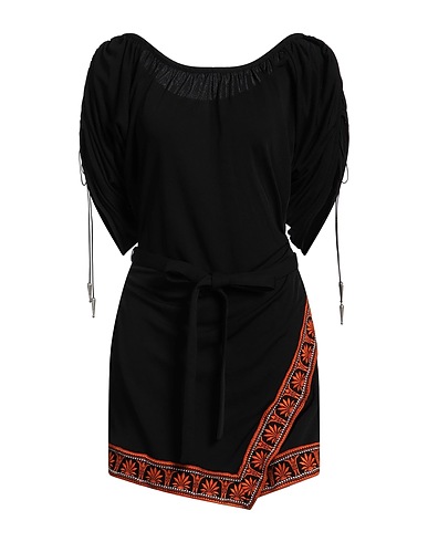 flared dress, jersey, solid color with appliqués, draped, embroidered, belt, crewneck, 3/4 length sleeves, zipper fastening, do not dry clean, do not bleach, do not tumble dry