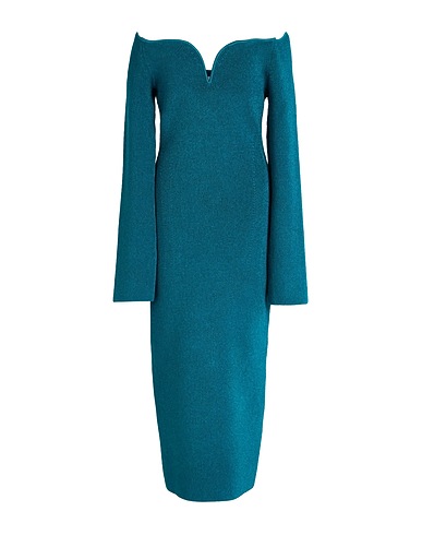 bodycon dress, knitted, medium-weight knit, solid color, no appliqués, off-the-shoulder, long sleeves, dry clean, do not bleach, do not tumble dry