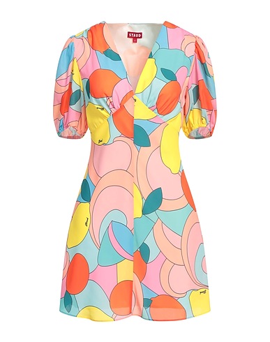 flared dress, crepe, multicolor, brand logo, v-neck, short sleeves, fully lined, zipper fastening, hand wash or dry clean, do not bleach, do not tumble dry