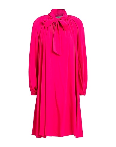 flared dress, crepe, solid color, belt, bow-tie neckline, long sleeves, buttoned cuffs, unlined, slit pockets, machine wash or dry clean, do not bleach, do not tumble dry