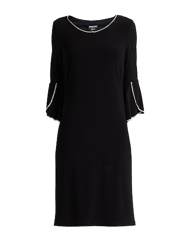 flared dress, jersey, solid color with appliqués, crystals, crewneck, 3/4 length sleeves, fully lined, stretch, hand wash, do not bleach, do not tumble dry, do not iron