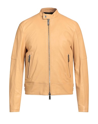 leather, strap detailing, solid color, crewneck, single-breasted , long sleeves, zipped cuffs, fully lined, zipper fastening, multipockets, contains non-textile parts of animal origin, dry clean, do not bleach, do not tumble dry, casual jacket