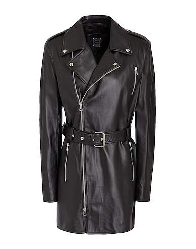 leather, belt, flashes, solid color, lapel collar, single-breasted , long sleeves, zipped cuffs, fully lined, zipper closure, belt loops, multipockets, pocket with zipper, contains non-textile parts of animal origin, single-breasted jacket. This garment contains a Digital ID, meaning you can discover a world of exclusive content about your piece; scan the QR code on the item's care label.