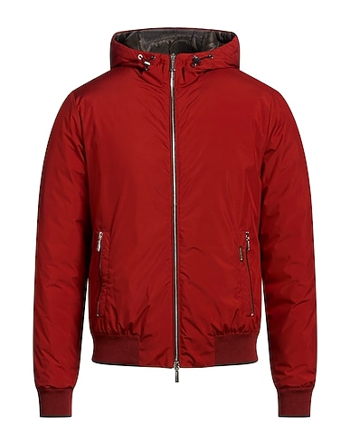 casual jacket, shell, brand logo, knitted trims, solid color, hooded, long sleeves, ribbed cuffs, goose down interior, heavyweight padding, zipper fastening, elasticized waist, zipped pockets, contains non-textile parts of animal origin, machine wash, do not bleach, do not tumble dry