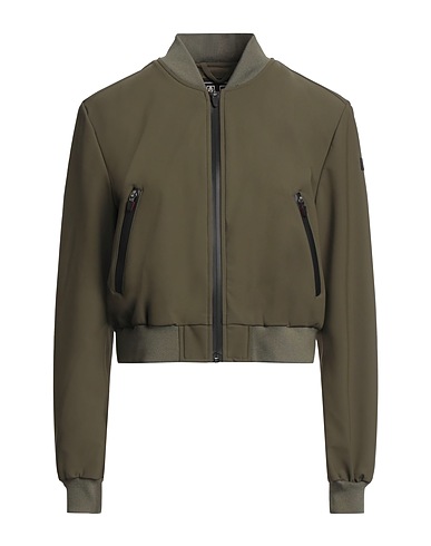 bomber jacket, shell, solid color, knitted trims, brand logo, crewneck, single-breasted , long sleeves, unlined, zipper fastening, zipped pockets, stretch, machine wash, do not bleach, do not tumble dry, this brand runs small