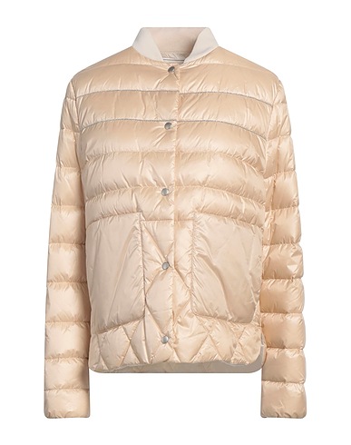 down jacket, shell, quilted, solid color with appliqués, embellished, leather trims, crewneck, single-breasted , long sleeves, goose down interior, snap fastenings, multipockets, contains non-textile parts of animal origin, hand wash or dry clean, do not bleach, do not tumble dry