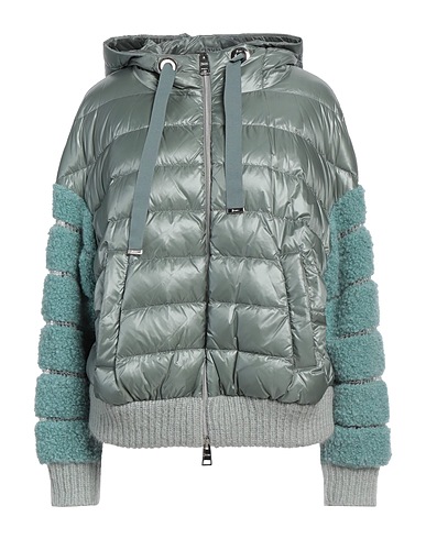 down jacket, shell, bouclé, solid color, knitted trims, hooded, single-breasted , long sleeves, goose down interior, zipper fastening, multipockets, contains non-textile parts of animal origin, hand wash, do not bleach, do not tumble dry, do not iron