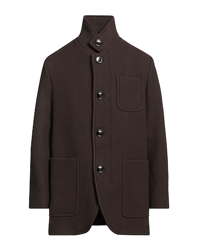 single-breasted coat, flannel, solid color, no appliqués, turtleneck, long sleeves, fully lined, button fastenings, zipper fastening, multipockets, dry clean, do not bleach, do not tumble dry