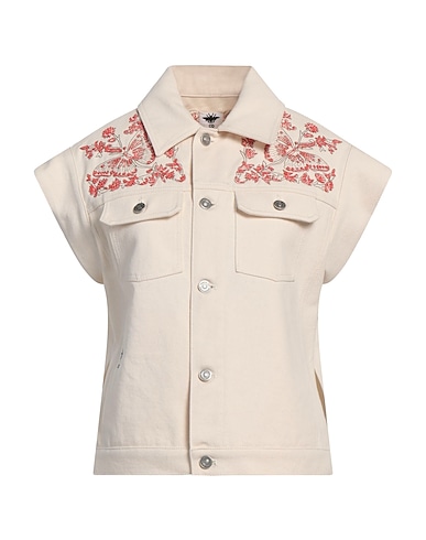 denim jacket, denim, metallic, solid color with appliqués, beads, colored wash, classic collar, single-breasted , short sleeves, unlined, button fastenings, flap pocket, dry clean, do not bleach, do not tumble dry, this brand runs small