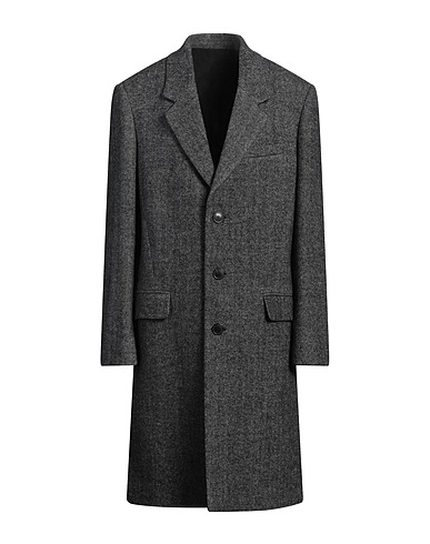 single-breasted coat, felt, herringbone, no appliqués, lapel collar, long sleeves, fully lined, button fastenings, one chest pocket, flap pockets, dry clean, do not bleach, do not tumble dry