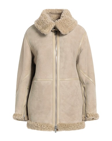 shearling jacket, shearling, no appliqués, solid color, classic collar, single-breasted , long sleeves, lined in shearling, zipper fastening, buckle fastening, slit pocket, contains non-textile parts of animal origin, specialist clean or dry clean, do not bleach, do not tumble dry