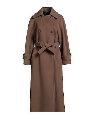 belted coat, felt, solid color, belt, lapel collar, double-breasted, long sleeves, fully lined, button fastenings, slit pockets, rear slit, machine wash, do not bleach, do not tumble dry