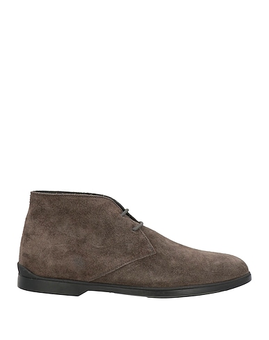 desert boots, suede, solid color, brand logo, leather lining, lace-up, round toe, flat, rubber cleated sole, contains non-textile parts of animal origin