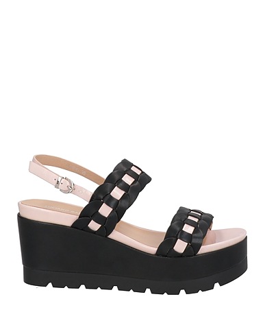 leather, nappa leather, varnished effect, no appliqués, two-tone, leather lining, buckle fastening, round toeline, wedge heel, rubber cleated sole, contains non-textile parts of animal origin