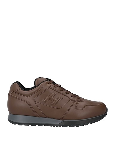leather, brand logo, solid color, leather backing, laces, round toeline, flat, rubber cleated sole, contains non-textile parts of animal origin, large sized, low-tops & trainers