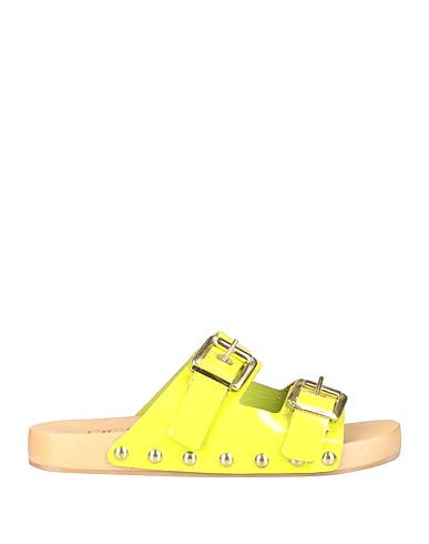 slide sandals, leather, solid color, no appliqués, round toe, flat, rubber sole, leather lining, contains non-textile parts of animal origin