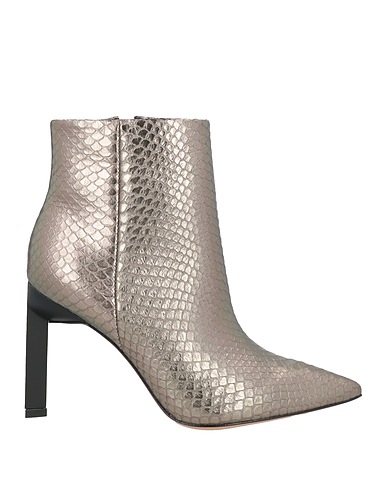 ankle boots, textured-leather, metallic, snakeskin-print, no appliqués, leather lining, zipper fastening, pointed toe, geometric heel, leather sole, contains non-textile parts of animal origin