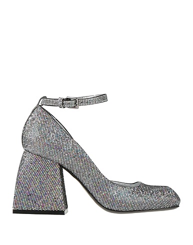 pumps, multicolor, glittered, leather lining, buckle-fastening ankle strap, square toe, square heel, covered heel, leather sole, contains non-textile parts of animal origin