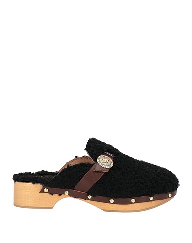 clogs, leather, solid color, studs, leather trims, round toe, block heel, rubber cleated sole, leather lining, contains non-textile parts of animal origin