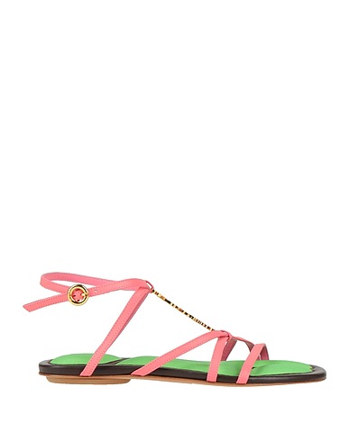 leather, brand logo, solid color, leather backing, buckling ankle strap closure, round toeline, flat, leather sole, contains non-textile parts of animal origin, ankle strap sandal