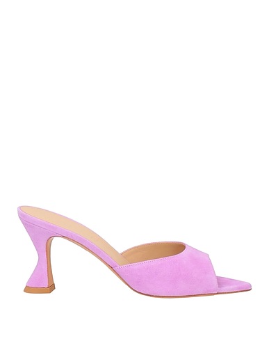 slide sandals, suede, solid color, no appliqués, leather lining, pointed toe, spool heel, leather sole, contains non-textile parts of animal origin