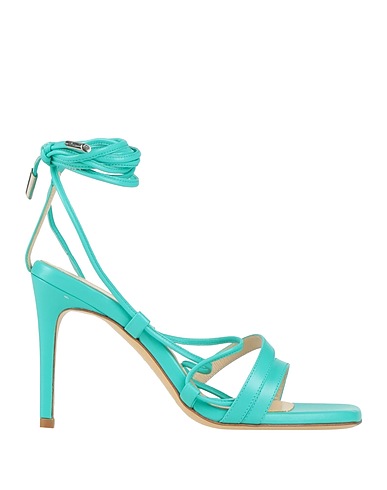 sandals, leather, solid color, no appliqués, leather lining, ties at ankle, square toe, spike heel, covered heel, leather sole, contains non-textile parts of animal origin