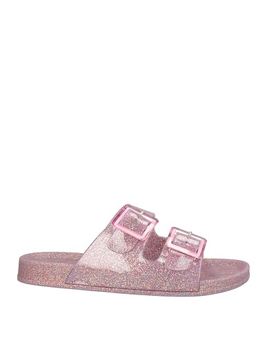 rubber, glitter, multicolor, rubber lining, buckle fastening, round toeline, flat, rubber cleated sole, pool slides