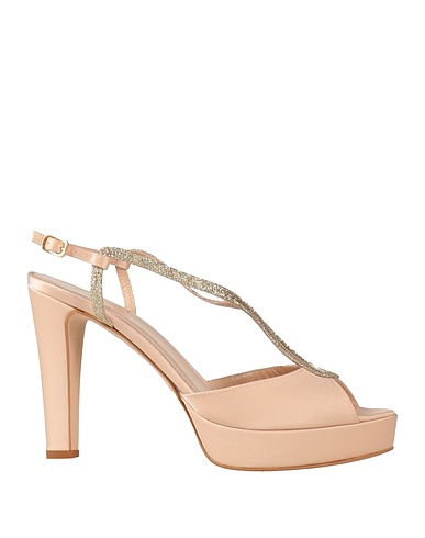 satin, glitter, two-tone, leather lining, buckle fastening, round toeline, stiletto heel, rubber cleated sole, contains non-textile parts of animal origin, ankle strap sandals