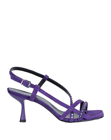 suede, crystals, solid color with appliqués, leather lining, buckle-fastening ankle strap, square toe, spike heel, rubber sole, contains non-textile parts of animal origin, ankle strap sandals