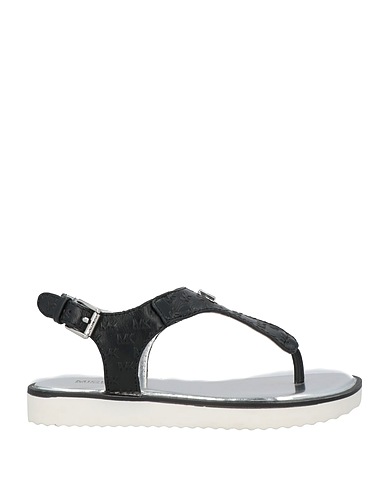 ankle strap thong sandals, synthetic material, logo-print, brand logo, fully lined, buckle fastening, round toe, flat, rubber sole
