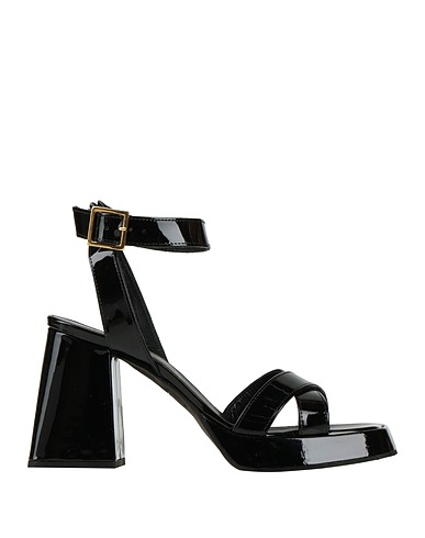 leather, patent-effect, no appliqués, solid color, leather lining, square toe, geometric heel, covered heel, rubber sole, contains non-textile parts of animal origin, ankle strap sandals