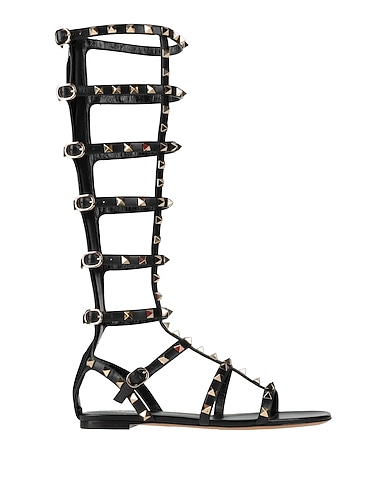 gladiator sandals, leather, solid color with appliqués, studs, leather lining, zipper fastening, buckle fastening, round toe, flat, leather sole, contains non-textile parts of animal origin