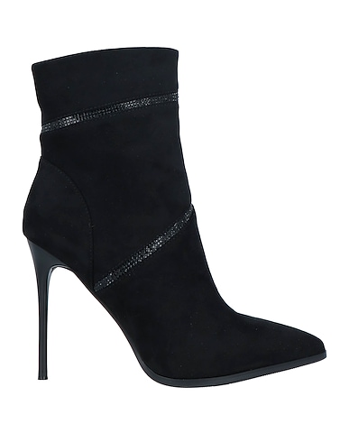 ankle boots, suede-effect fabric, solid color with appliqués, crystals, fully lined, zipper fastening, pointed toe, spike heel, rubber sole