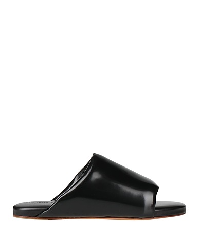 leather, no appliqués, solid color, leather lining, round toe, flat, leather sole, contains non-textile parts of animal origin, slide sandals
