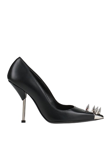 leather, studs, solid color with appliqués, leather lining, pointed toe, spike heel, leather sole, contains non-textile parts of animal origin, stilettos