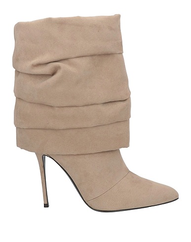 calf boots, suede-effect fabric, solid color, no appliqués, leather lining, pointed toe, spike heel, leather sole, contains non-textile parts of animal origin