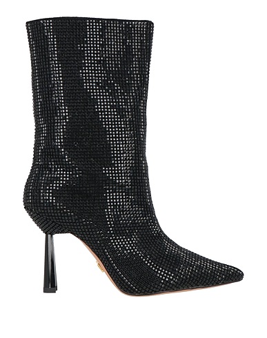 leather, crystals, solid color with appliqués, leather lining, pointed toe, spool heel, plastic heel, rubber sole, contains non-textile parts of animal origin, calf boots