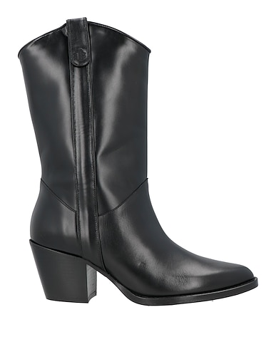 cowboy ankle boots, leather, solid color, embroidered logo, leather lining, zipper fastening, round toe, cuban heel, leather sole, contains non-textile parts of animal origin