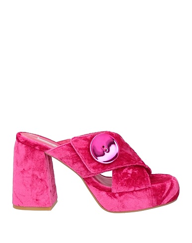 sandals, velvet, solid color, button-embellished, leather lining, velcro fastening, round toe, square heel, covered heel, rubber sole, contains non-textile parts of animal origin