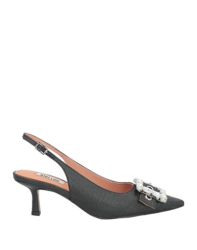 slingback pumps, synthetic material, solid color with appliqués, crystals, buckle, leather lining, buckle fastening, pointed toe, spool heel, leather/rubber sole, contains non-textile parts of animal origin