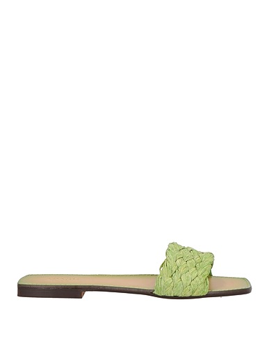 slide sandals, faux raffia, solid color, no appliqués, leather lining, square toe, flat, leather sole, contains non-textile parts of animal origin