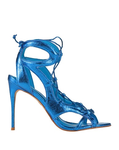 sandals, leather, metallic, solid color, no appliqués, leather lining, lace-up, round toe, spike heel, rubber sole, contains non-textile parts of animal origin